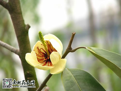 金葉含笑圖片 樹形端莊秀美,葉色奇特,花大芳香,果鮮紅欲滴