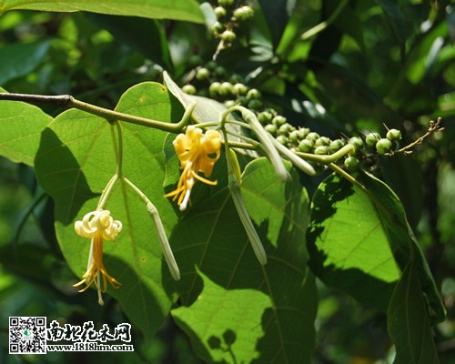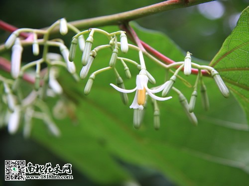 聚傘花序腋生,長3-4厘米,被稀疏微柔毛,有7-30(-50)花,花梗長5-15毫米;小苞片線形或披針形,長3毫米,常早落;總花梗長1-1.5厘米,常分節;花冠圓筒形,長1-1.5厘米,花萼長2-3毫米,頂端分裂為5-8枚齒狀萼片,長0.5-1毫米,寬2.5-3.5毫米;花瓣6-8,線形,長1-1.5厘米,寬1毫米,基部粘合,上部開花后反卷,外面有微柔毛,初為白色,后變黃色;雄蕊和花瓣同數而近等長,花絲略扁,長2-3毫米,有短柔毛,花藥長6-8毫米,藥隔無毛,外面有時有褶皺;花盤近球形;子房2室,花柱無毛,疏生短柔毛,柱頭頭狀,常2-4裂。核果卵圓形,長約5-7毫米,直徑5-8毫米,幼時綠色,成熟后黑色,頂端有宿存的萼齒和花盤,種子1顆?;ㄆ?-7月和9-10月,果期7-11月。