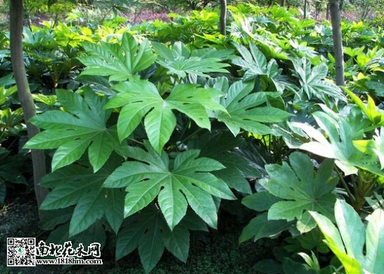 八角金盤的播種地,在播種前必須進行精細整地,施充分腐熟的有機肥料30 t/hm2+三元復合肥750 kg/hm2及防治地下害蟲的餌料適量。育苗地應整平整細,并筑寬為1.5 m的地上畦育苗基地。八角金盤待5月果實成熟時邊采收邊播種,播前需將果實種子外表皮洗凈,方法采用條播法,播前在畦面橫開淺溝,溝距50 cm,播后即澆水,覆蓋淺土以利于出苗。出苗后要做好澆水、追肥、松土、除草、防病治蟲等工作。