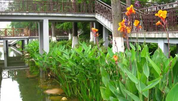 在自然湖渠及生態修復上,可選用各類植物成片栽植以達到盡快形成較好的自然群落效果,注意深水植物,淺水植物,濕生植物的搭配選擇;