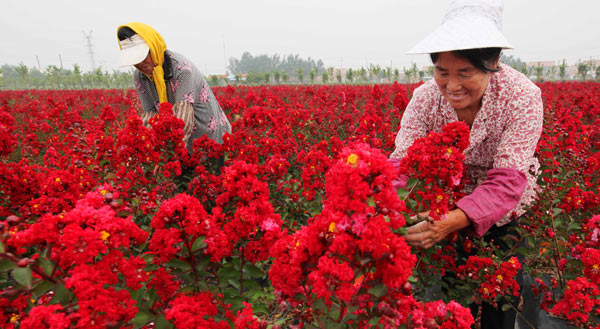 三紅紫薇對二氧化碳、氟化氫等有毒有害氣體有較強的抗性,也有較好的吸滯粉塵能力。三紅紫薇具有葉細枝密、干粗根露等特點,自古至今都是非常好的盆景、樁景素材。根據其喜光厭陰的特性,不適合發展室內盆景,可重點發展室外盆景。也可將紫薇單株種植修剪成花球,與其它彩葉樹種搭配,觀賞效果也很別致。