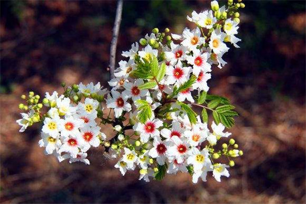 這種樹正常情況是在春天開花的,在我國偏北一點的地方都有栽種,所以即使是生長在室外,也是能安全過冬的。開花的時間基本是早春二月,但是由于品種之間的差距特別大,結果的情況也不穩定,所以不以結果為目的來栽種它,而用它們作為油料和生態林,效益還是很不錯的。但是它們的花兒開起來十分漂亮一簇簇的紅心小白花開在一塊兒,迎著藍天,自有一番美感。