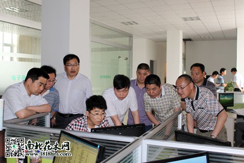 在花木城總經理劉攀峰和副總經理吳巖宋的帶領下,卞建軍走進花木城電子商務中心,詳細了解了“南北花木網”的運營模式、人員情況。在技術人員的演示下,卞建軍還體驗了網站的苗木檢索、價格查詢等功能,對花木行業走電子商務模式表示贊同。