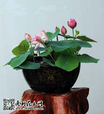 種藕栽好后,在上面再覆蓋一層素沙土,以保水質清潔,然后在盆中央慢慢澆水。開始時,水位不宜太高,等葉長出后,再漸漸加高。如浮葉過多過密,可將過多的葉片塞入泥中。生長期間,不必再施肥,到7月~9月花期,便會接蕾吐芳。家庭盆栽荷花,最好選用碗蓮品種,因其葉小、花小,植株亦小,更顯得小巧雅致.