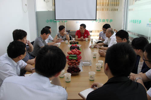 在結束參觀考察后,在黃董事長帶領下,農行一行走進花木城電子商務中心會議室,進行了詳細的商務洽談。會議上,南北花木網運營總監張平春介紹了近年來南北花木網在沭陽國際花木城領導下取得的進步,并詳細闡述了下一步南北花木網的運行規劃,引起了農行一行的極大興趣。他們表示花卉行業是全國性的綠色朝陽產業,江蘇農業銀行將為南北花木網會員和花木城商戶提供網絡創業貸款,以幫助沭陽花木業的進一步發展。
