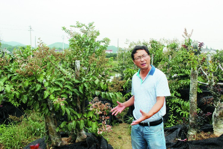 “搶時間”是楊家順經營思路中很重要的一點。記者從他女婿許曉裕那得知,2年前,楊家順果斷拔除了苗圃里百余畝紅葉李,開始生產美國紫薇嫁接苗。“我岳父認定了一件事,一定要搶在別人前頭做,如今這種規格的批量美國紫薇市場上并不多。”許曉裕直稱贊岳父當時轉型選對了時機。