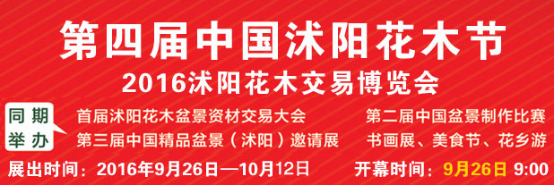 第四屆中國沭陽花木節將于9月26日在沭陽國際花木城舉辦?;顒悠陂g將開展盆景比賽、盆景邀請展、盆景大師技能表演、花木交易博覽會、首屆沭陽花木盆景資材交易大會、第四屆中國淘寶村高峰論壇、花鄉游以及盆景制作、金秋客商看沭陽,活動內容豐富、形式多樣。其中,2016年中國沭陽花木交易博覽會聯合上海、浙江、江蘇、山東、安徽等全國近20個省份的苗木企業參展,推出展位近3000個,主要展出以下內容: