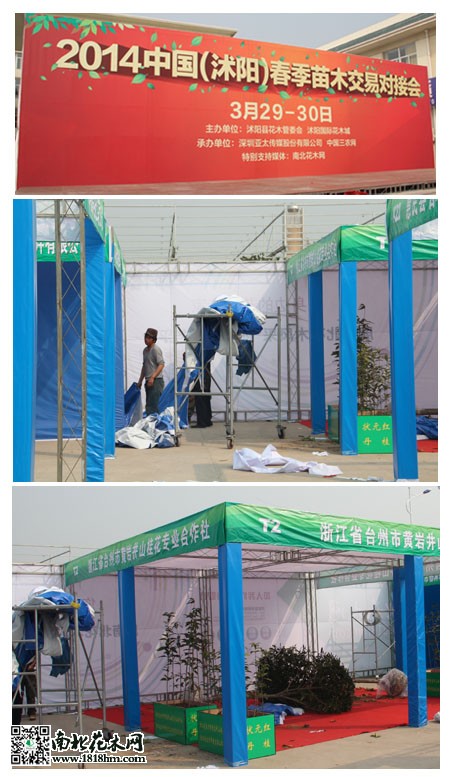 3月28日資訊:#2014中國沭陽春季苗木交易對接會#即將舉行,3月28日下午各展商在忙碌布置展區。我們先來看一下這次作為特約媒體支持的南北花木網的展區布置情況。