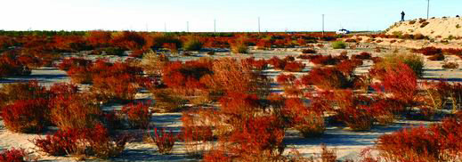 白刺根系發達,能在飛沙地匍匐生長,有改鹽防風固沙作用。