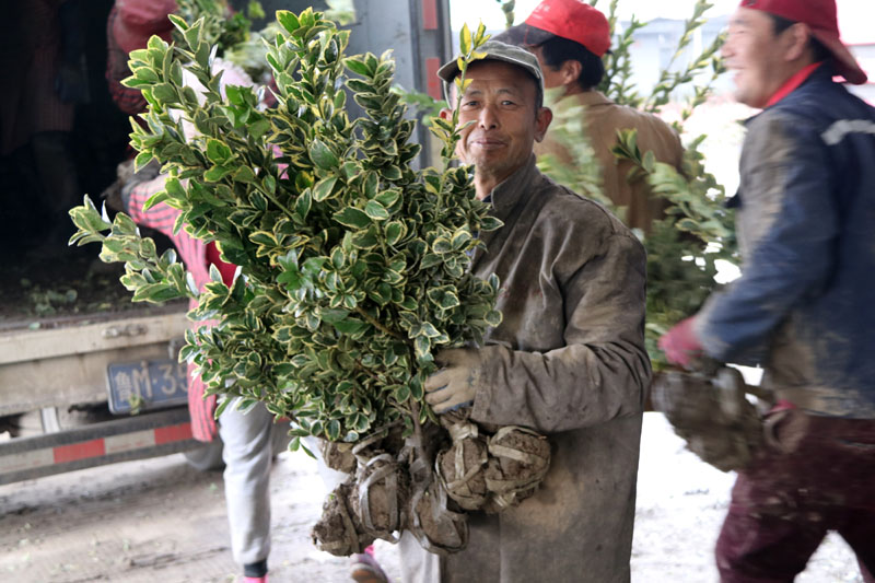 “今天沒有金森女貞,早上賣完了,海桐明天到,到了我就給您發過去。”方興國的電話很忙,一天到晚響個不停,今天的苗早上就賣完了,明天的貨已被預訂,生意做成這樣誰都開心。方興國笑著說,“你要有好的產品,客戶才會來找你,做生意還是要靠誠信為主,有好多客戶直接打錢給我叫我發苗,我都不認識,客戶信任就是對我最大的支持,而我也一定會努力做到讓客戶滿意。”