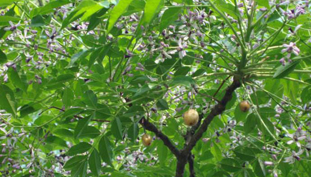 苦楝樹冠圓整,樹姿優美,干性強。初夏滿樹紫花,簌簌清香;深秋果實累累,經冬不落,園林觀賞價值較高。而且苦楝生長強健,病蟲害少,能分泌天然的殺蟲劑,分布廣泛,不擇土壤,耐粗放管理和鹽堿土壤。