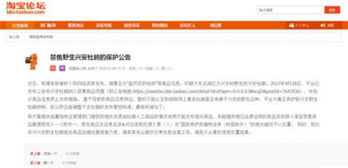 盡管如此,9日下午,淘寶再度發布《禁售野生興安杜鵑的保護公告》,其中表示即日起調整干支杜鵑的發布管控標準,新標準下,商戶需提供由屬地林業管理部門提供的相關資質或杜鵑人工栽培的情況說明才能發布相關商品,“同時,我們將對興安野生杜鵑相關商品加強巡查排查力度。”