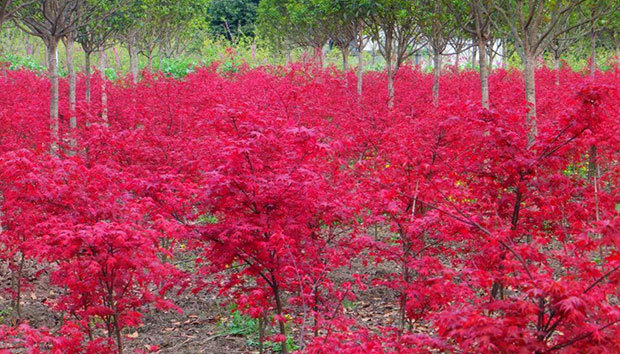 陳國帥告訴記者,截止到2017年11月中下旬,家里120畝地的紅楓已全部被訂購了。‘紅冠’帶著深秋最后一抹艷紅前往全國各地,其種植面積與范圍正在不斷擴大。