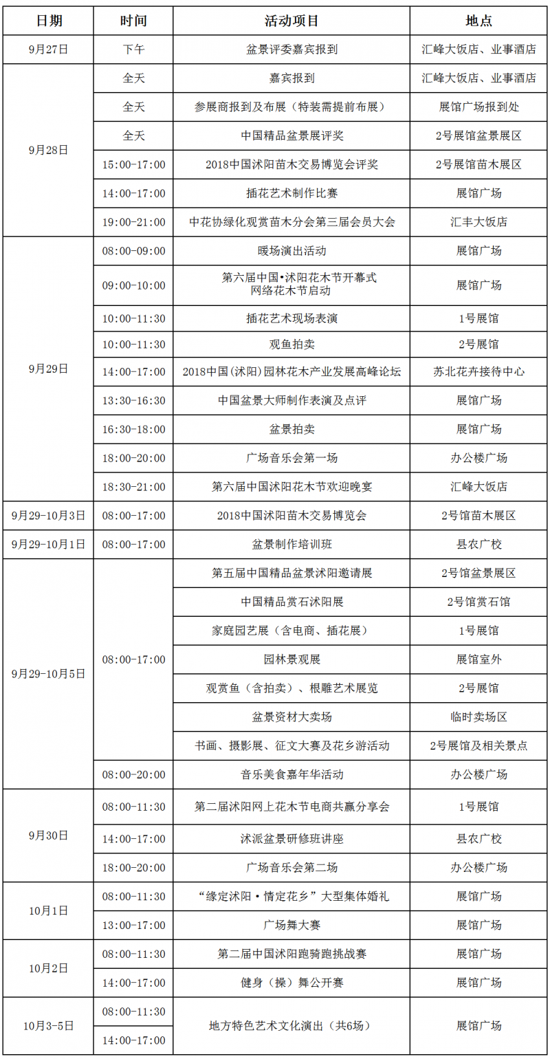 地 點:沭陽國際花木城、縣內有關場館及旅游景點