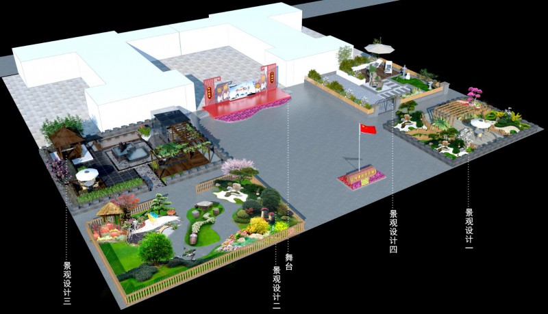 二、展位設計:景觀展總體面積約1600平方米,擬設8個展位,每個展位面積約200平方米(16ⅹ12)。