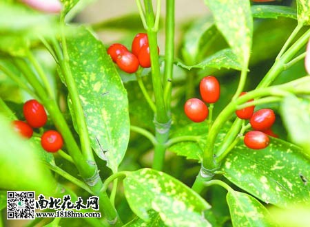 結果子的灑金珊瑚,紅色果實很像枸杞
