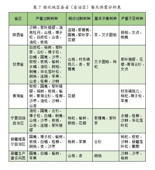 *西北地區各?。ㄗ灾螀^)苗木供需情況如下: