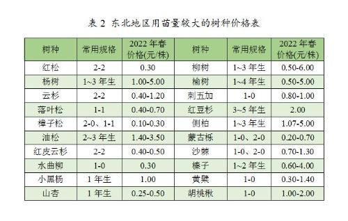 近年來,華北地區著力進行森林城市建設,各?。▍^、市)相繼出臺和實施了一大批綠化造林的新通知、政策、規劃和工程?!侗本┥殖鞘邪l展規劃(2018-2035年)》、《山西省關于科學開展2022年國土綠化工作的通知》和《河北省林業和草原保護發展“十四五”規劃》提出以提高森林和綠地覆蓋率作為發展目標;《天津市天然林保護修復工程(2018-2035年)》提出全面貫徹落實天然林保護修復工作;《內蒙古自治區“十四五”林業和草原保護發展規劃》關注野生動植物保護和林草資源保護。當前華北地區對樹種的需求以鄉土樹種、彩葉樹種、喬木樹種、灌木樹種、藤本樹種為主。根據近幾年的苗木供需情況,結合上述規劃政策,預計2023年華北地區苗木的可供造林用苗量約為48億株。實際使用量略有上升,約為17億株。