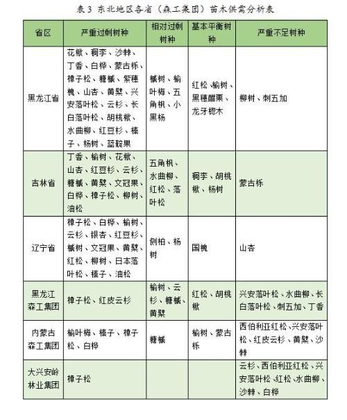 *東北地區各?。ㄉぜ瘓F)苗木供需情況如下: