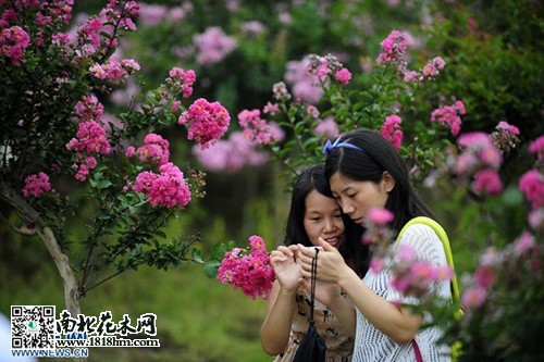 兩位美女在紫薇叢中拍照留念圖片來自新華網