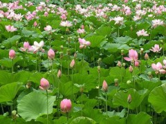 荷花是水生植物,性喜相對穩定的平靜淺水,湖沼、澤地、池塘是其適生地。荷花的需水量由其品種而定,大株形品種如古代蓮、紅千瓣蓮相對水位深一些,但不能超過1.7米.中小株形只適于20~60厘米的水深.同時荷花對失水十分敏感,夏季只要3小時不灌水,缸栽荷葉便萎靡,若停水一日,則荷葉邊焦,花蕾回枯.荷花還非常喜光,生育期需要全光照的環境.荷花極不耐蔭,在半蔭處生長就會表現出強烈的趨光性.野生種藕的生命力強,適應環境廣,當年可開花。荷花色艷、花香、花期長,是水面綠化、制景工程的首選。我方可施工種植、管理。