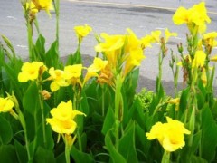水生美人蕉株高1~2 m;葉片長披針形,藍綠色;總狀花 序頂生,多花;雄蕊瓣化;花徑大,約10 cm;花呈黃色、紅色或粉紅色;溫帶地區花期4~ 10月份,熱帶和亞熱帶地區全年開花;地上部分在溫帶地區的冬季枯死,根狀莖進入休眠期,熱帶和亞熱帶地區終年常綠。