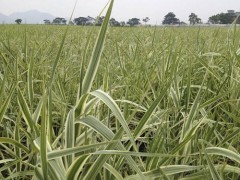 多年生挺水草本觀葉植物。株高1.5 ~2.0m。宿根,地下根狀莖粗而多結,地上莖由分蘗芽抽生,通直有節,叢生,葉互生,斜出,排成二列,披針形,彎垂,灰綠色具白色條紋,葉端漸尖,葉基鞘狀,抱莖,圓錐花序頂生,大型羽毛狀?;ㄆ?0月。
