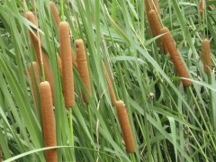 香蒲,香蒲屬作物,起源于中國,為多年生草本植物,一般株高1.5~2.5米, 須根, 具有地上假莖和地下根狀莖。纖維用作物。別名蒲黃和蒲草。香蒲是制造人造棉和紙張的原料。葉和假莖分別是編織蒲包及蒲席的原料, 白嫩的假莖和根狀莖可作蔬菜,蒲黃入藥。