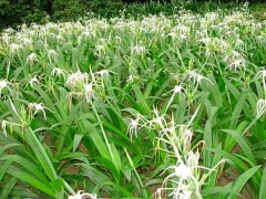 水鬼蕉葉姿健美,花期6-7月,花白色,花形別致,亭亭玉立。適合盆栽觀賞。溫暖地區,可用于庭院布置或花境、花壇用材。