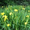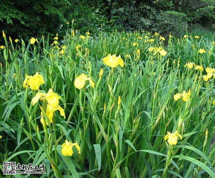 黃菖蒲,別名:黃花鳶尾、水生鳶尾?;ㄇo粗壯,高60—70厘米,花期5月,果期6—8月。適應范圍廣泛,可在水池邊露地栽培,亦可在水中挺水栽培。是水生花卉中的驕子,花色黃艷,花姿秀美,如金蝶飛舞于花叢中,觀賞價值極高。黃化鳶尾葉片翠綠如劍,花色艷麗而大型,如飛燕群飛起舞,靚麗無比,極富情趣,可布置于園林中的池畔河邊的水濕處或淺水區,既可觀葉,亦可觀花,是觀賞價值很高的水生植物。如點綴在水邊的石旁巖邊,更是風韻優雅,清新自然。