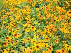 黑心菊,菊科,金光菊屬,一二年生草本?;ㄐ穆∑?,紫褐色,周邊瓣狀小花金黃色?;ㄆ谧猿跸闹两邓?。栽培變種邊花有桐棕、栗褐色,重瓣和半重瓣類型?;ㄐ挠虚蠙炀G的“愛爾蘭眼睛”,及花序徑大至15厘米的四倍體,花色除黃色外,有各季紅花和雙色。原產美國東部地區。耐寒性不強,華中地區尚可秋播,露地越冬。亦可作切花。