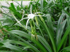 水鬼蕉,多年生草本。有鱗莖。葉數枚,集生基部,抱莖;劍形,長45~75厘米,寬2.5~6厘米,深綠色,多脈?;ㄇo扁平,實心,高30~80厘米,外苞片長5~7厘米,基部極闊;花白色,無柄,3~8朵生于花莖之頂;花被管圓柱形,纖弱,長短不等,約10厘米以上,裂片線形,常短于管;雄蕊生于管之喉部,花絲基部合成杯形,上部分離,花藥丁字著生;子房下位,花柱頭狀?;ㄆ谙哪┣锍?。葉劍形,端銳尖,多直立,鮮綠色,長50—80ca,寬。一6ca?;ㄝ惚馄?,高30一?Ocm;花白色,無梗,呈傘狀著生;有芳香;花筒部長短不一,帶綠色;花被片線狀,一般比筒部短;副冠鐘形或闊漏斗形,具齒牙緣。鱗莖徑7—11cm。為庭園栽培植物。